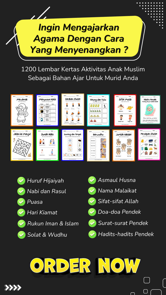 Ingin mengajarkan Agama dengan cara yang menyenangkan? 1.200+ WORKSHEET AKTIVITAS ANAK SERU DAN ISLAMI solusinya!